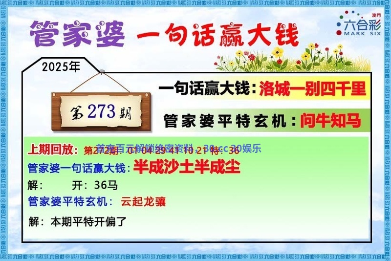 272期二肖 | 兔马 | 开:马36 |