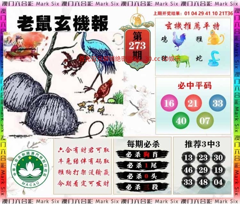 271期九肖 | 羊马蛇虎牛兔鸡龙鼠 | 开:鼠06 |