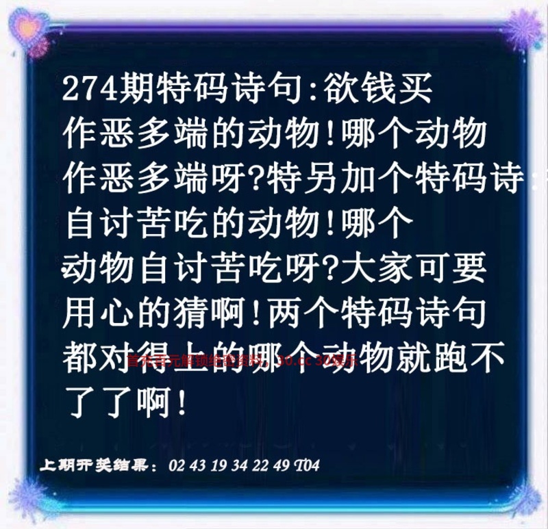 274期『四头爆中』❀『0124头』开:狗44准 |