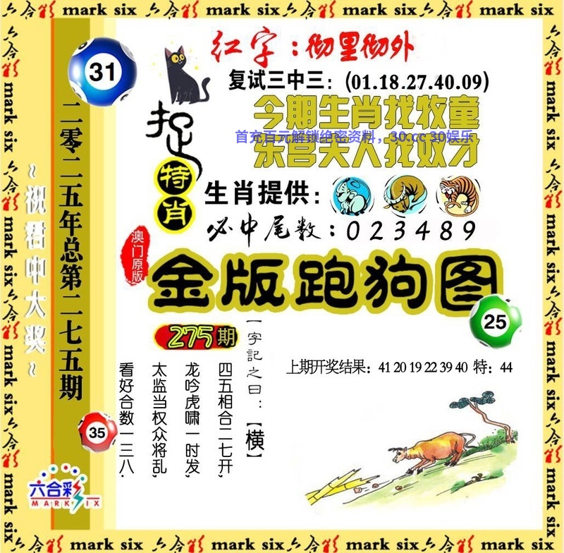 275期二肖 | 鸡狗 | 开:鸡45 |